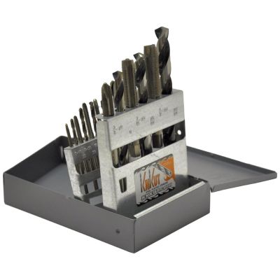 KnKut National Fine Tap & Drill Bit Set pairs the correct drill bit for each tap in this set. No more charts or guess work. High Speed Steel Spiral point taps cut clean and accurate threads in stainless steels and other hard metals. High Speed Steel Jobber Length Drill Bits feature a 135° split point with a nitride treatment giving you the hardness you need to drill tough metals such as titanium alloy and stainless steel.